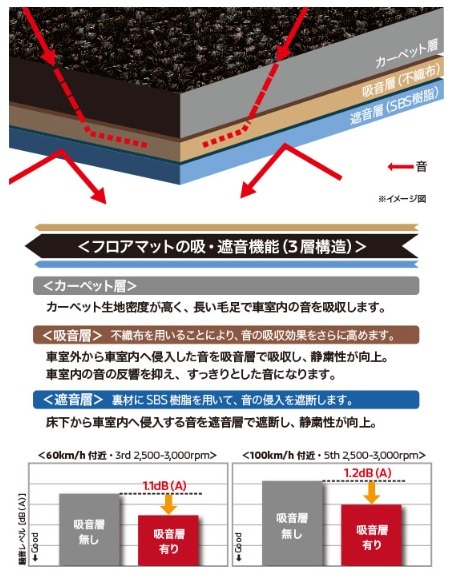 ■3層構造により吸音性能を向上させたフロアマットです デザインをリニューアルしました