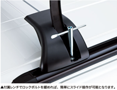 専用アタッチメントを活用し、積載する各種アウトドアグッズやレジャー用品の長さや大きさに合わせてベースバー部を任意の位置で使用することができます