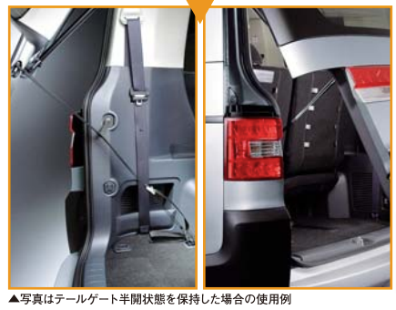 ベルト長:約3メートル また、テールゲートを常に半開位置に止めておくことができるリングベルト付